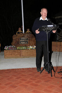 The flag attendants, Joseph Hall and Hayden Della France raised the flag and lowered it to half-mast just prior to the 6 O’clock start. Introduction was conducted by Neil Tuffin who did an excellent job with Susan Della Franca controlling the sound equipment.