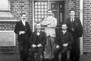 OBSERVATORY STAFF c1900 #8 The first Government Astronomer, W. Ernest Cooke is seated at the left. His successor Harold Curlewis is standing in the light coloured suit
