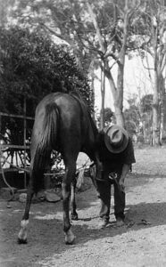 ERNIE MASON SHOEING HIS HORSE