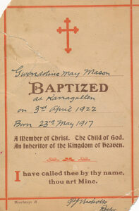 GWENDOLYNE MASON'S BAPTISIM CERTIFICATE (Her Mother always spelt it this way)