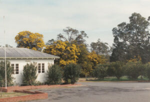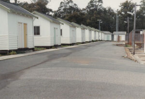 A barbed wire fence was set around the perimeter of the compound, tents set up for staff and the male prisoners transferred from Fremantle. Some of the single men’s hut from the mill were initially recycled for the prison. Thirteen prisoners escaped on the first night: a stronger perimeter fence was erected and the military agreed to set aside a section of Fremantle Prison for recalcitrant prisoners. The captured escapees and those considered to be of maximum security risk were returned to Fremantle. New timber-framed building were introduced for administration, staff housing, single-bed hut accommodation, and support facilities such as kitchen , latrines and workshops. After the evacuation of Fremantle Prison by the military at the end of World War Two, Barton’s Mill continued as a prison for “suitable” prisoners of minimum security risk.