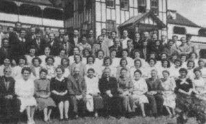 Among other donations, the gifts of three hens, a rooster and 12 white leghorn chickens guaranteed eggs for food and proved to be the forerunners of the future poultry industry. What was meant to bring in an immediate income was the cutting of timber for sale. Two hundred and seventy-three hours of labour were spent in cutting up the timber, felled while clearing the property. However, the sale of the wood brought in only two-thirds of the amount paid into students fees accounts for their expended labour. Living in temporary accommodation and tired from each day’s labour, the initial students attended Bible classes in the evenings under the instruction of Harry Martin.