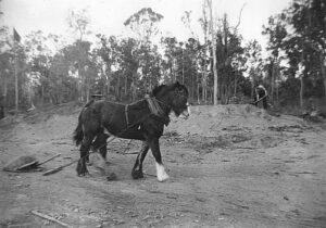 HORSE PULLING A DRAG SCOOP DURING CONSTRUCTION #9